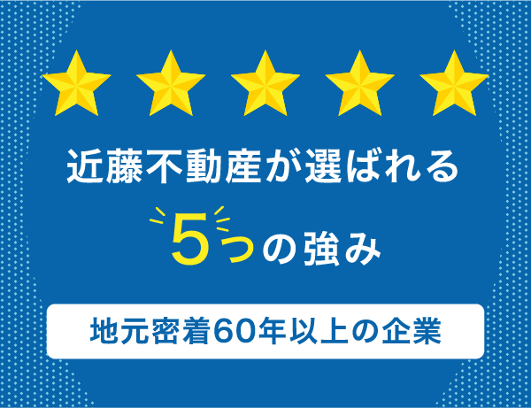 地域密着企業の近藤不動産だからこそ、選ばれる理由の5項目をご紹介します。