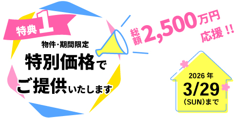 ◆ 内容 /対象物件を特別価格で販売いたします(総額2,500万円を応援いたします)