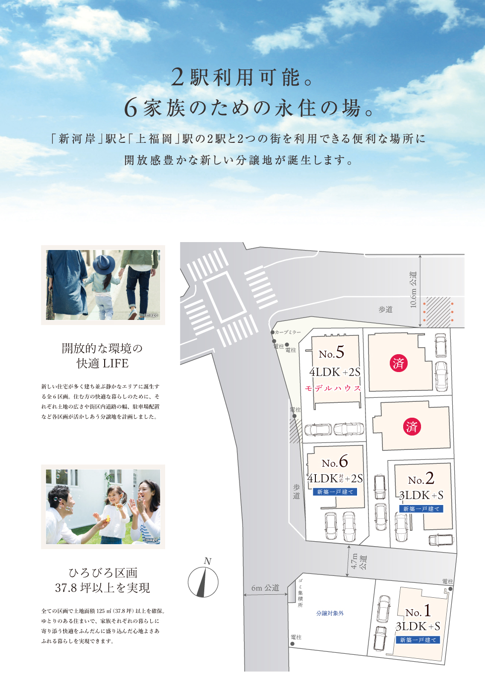 全区画とも土地面積は37坪を超え、のびのび豊かに暮らせる分譲地です。