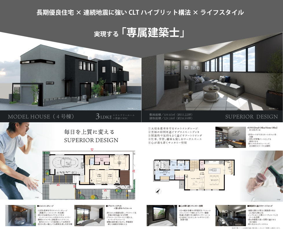 | 建物構造 | 木造2階建 【認定長期優良住宅×CLTハイブリット構法】 |