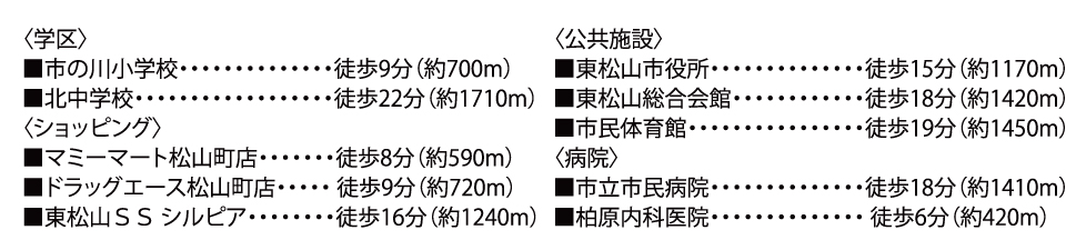 | 備考 | ■その他/埋蔵文化財『中耕地遺跡』包蔵地(調査済)、ゴミ集積所・開発道路は東松山市に採納済み、水道負担金別途(20mmの場合231,900円) |