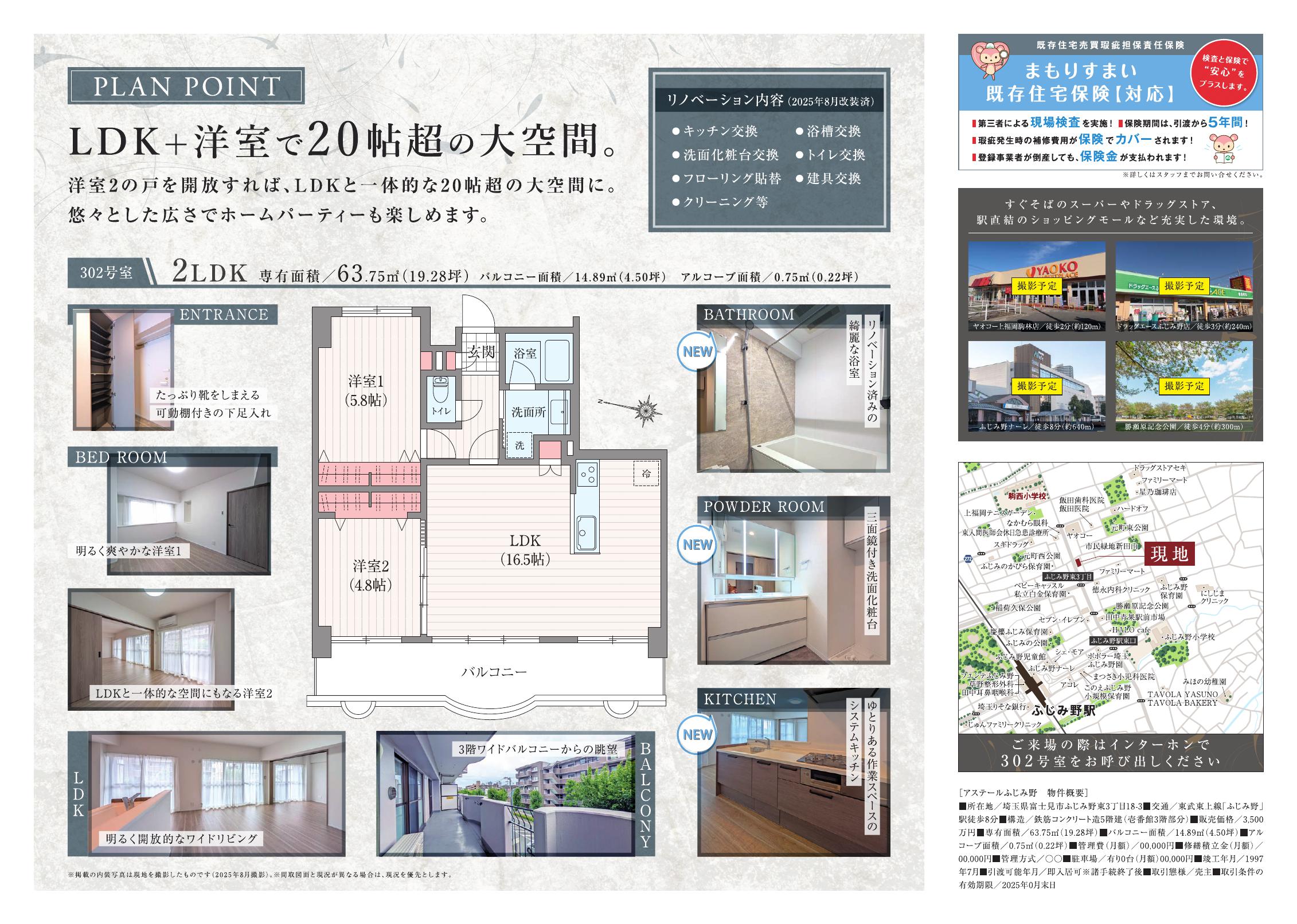 東武東上線 ふじみ野駅 徒歩10分 【アステールふじみ野物件概要】 ■構造/鉄筋コンクリート造5階建(3階部分)■販売価格/3,480万円■専有面積/63.75㎡(19.24坪)■バルコニー面積/14.89㎡(4.49坪)■アルコーブ面積/0.75㎡(0.22坪)■管理費(月額)/14,090円■修繕積立金(月額)/20,400円■管理方式/巡回■施工年月/1997年8月■引渡可能年月/即入居可※諸手続終了後■取引態様/売主■取引条件の有効期限/2025年10月末日 |